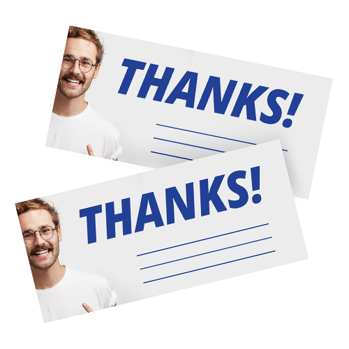 Don't hesitate to add that personal touch to your products with Helloprint's Compliment Slips! Print in full colour on a premium paper type of your choice. A compliment slip is the first thing a customer will see after receiving their much-anticipated delivery; it's a convenient opportunity to both engage them with a message and emphasise your company's professionalism. Want to go the extra mile to leave a smile on the face of your customers? Seal your compliment slips with a discount code in an envelope; there's nothing better than a nice surprise after all.