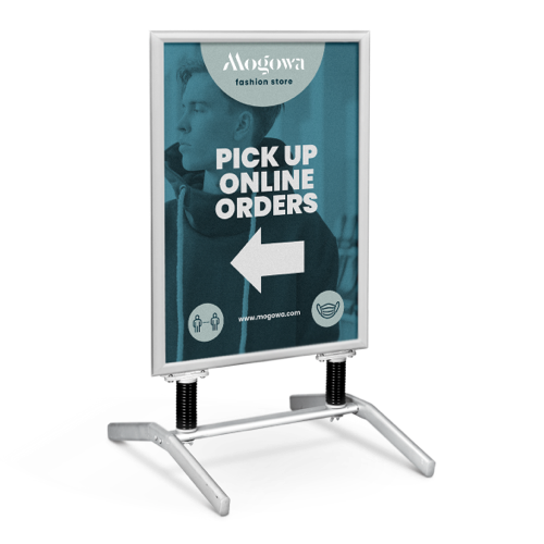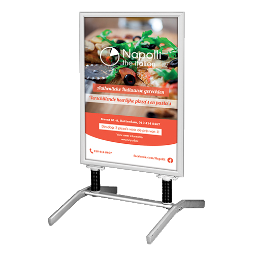 With swing base signs, you can impress everyone on the street. With stable feet your swing base will always stay put and catch everyone's eyes. Posters can be easily switched so this sign is perfect for your daily or weekly promotions. Manufactured of anodised aluminum and plastic, which provides an extra protective layer for your posters. Please note this product is not fully water proof. Order yours from Helloprint today. Pavement signs are delivered without posters. need posters with your pavement signs? Click here!.