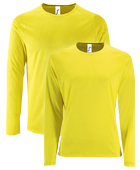The Basic Long Sleeve Sports T-shirts at Helloprint will make sure you will have a striking and comfortable appearance. The Basic Long Sleeve Sports T-shirts of the brand Sol's can be screen printed up to 4 solid colours. The fabric is made of 100% breathable polyester.