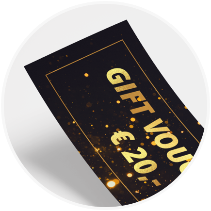 I understand!Do you want to add that luxurious feel to your vouchers? Add a finish to them! Get one of our exclusive paper foil finishes to highlight the best parts of your design. For a little shine, get the Spot UV finish, which is a clear gel on top of the best aspects of your design. If you are feeling even fancier, go for the Metallic foils that come in gold, silver, copper and rose gold. Or shine even brighter with the Glitter disco foil and the Silver rainbow foil.